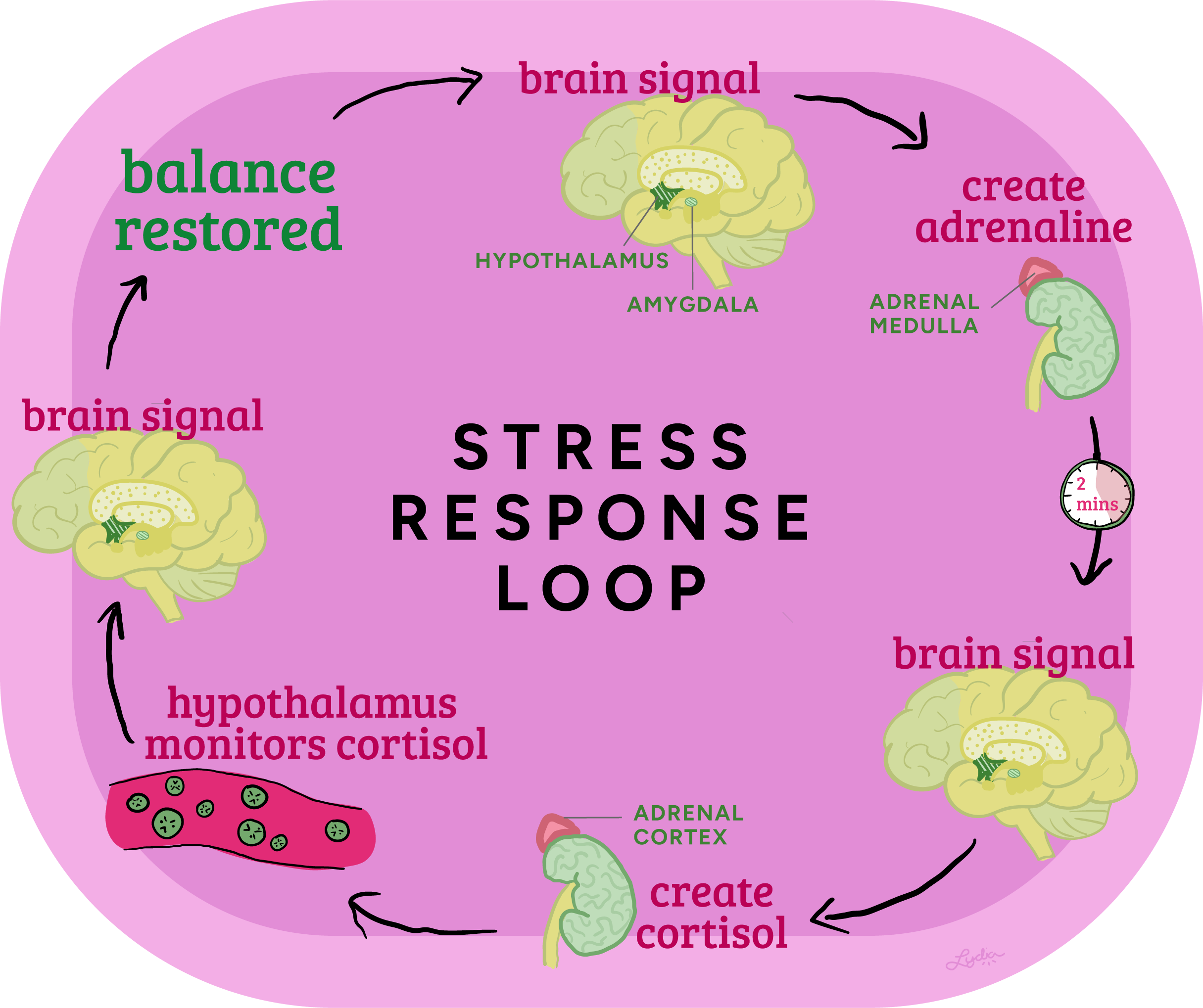 I’m not really as concerned with adrenaline in this article, as it’s more of a quick sudden response and this is about chronic stress. Instead, we’ll focus on cortisol.