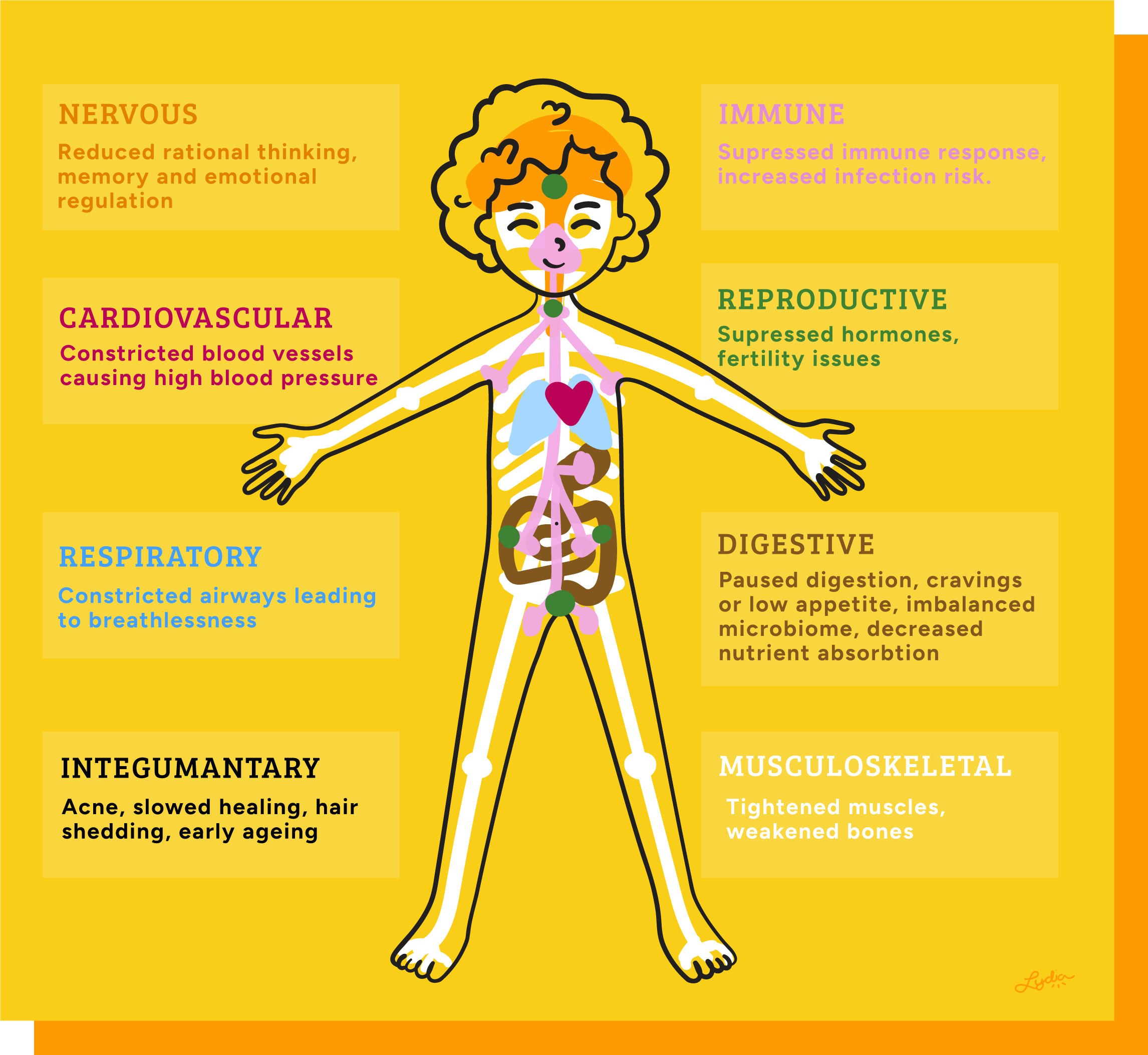 We often say “I feel stressed” but it’s more like a state. Stress literally affects every cell in your body and changes the way your body behaves.